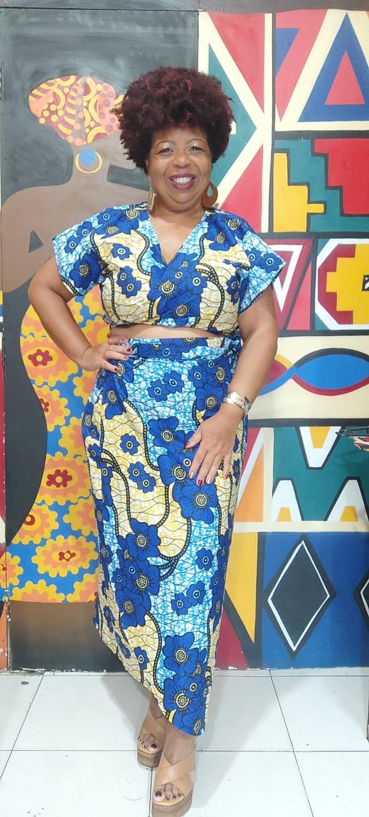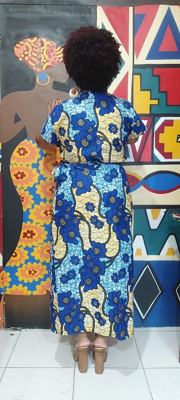 - Conjunto de Saia Envelope+ Blusa em Tecido Africano